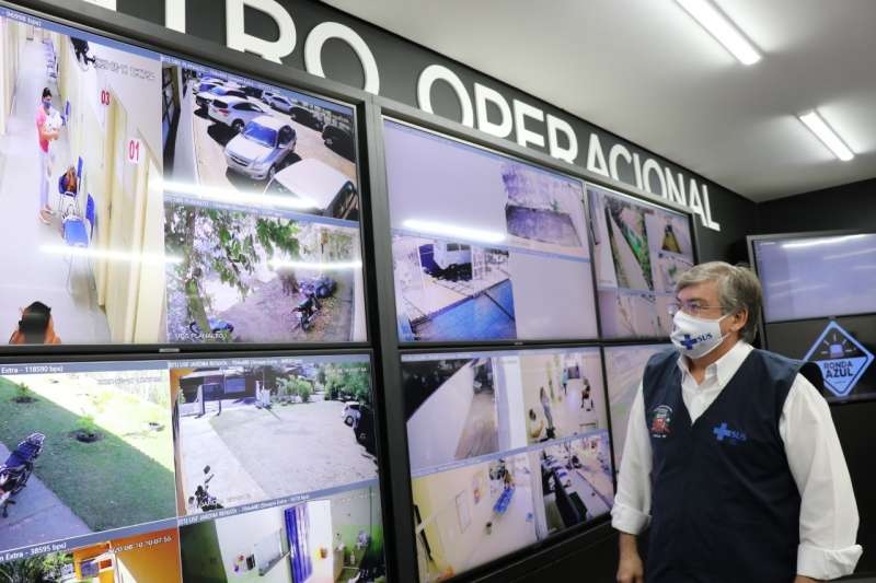 O Programa Ronda Azul mantém cerca de 1.000 câmeras de segurança e alarmes em 154 prédios públicos municipais, como escolas, unidades de saúde, serviços da Secretaria de Assistência e Desenvolvimento Social (Sads), Ganha Tempo, secretarias municipais externas e entre outros locais, como o Terminal Rodoviário Urbano.