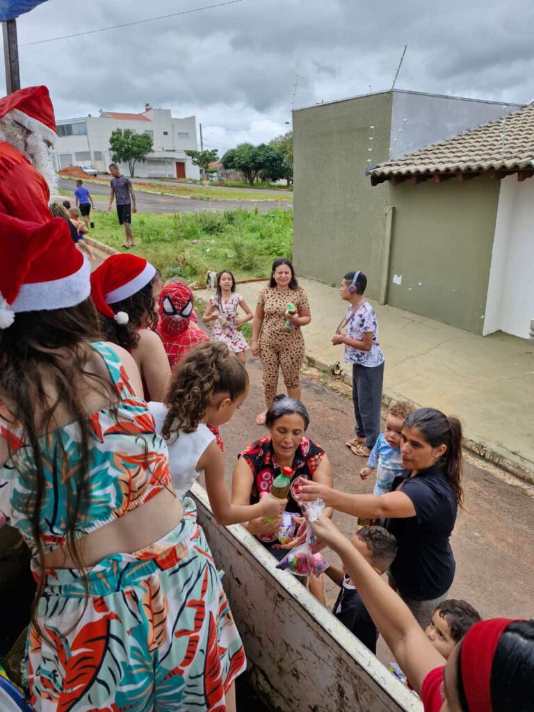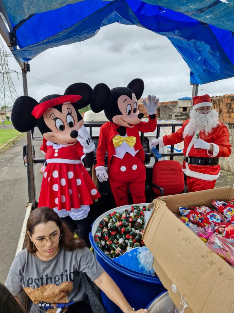 Além da distribuição, a carreata incluiu caminhões e personagens como Mickey, Minnie, Papai Noel e Homem-Aranha, que animaram o público. “Contamos com o apoio de parceiros e empresários que tornam possível fazer o projeto crescer a cada ano”, destaca Jonathan.
