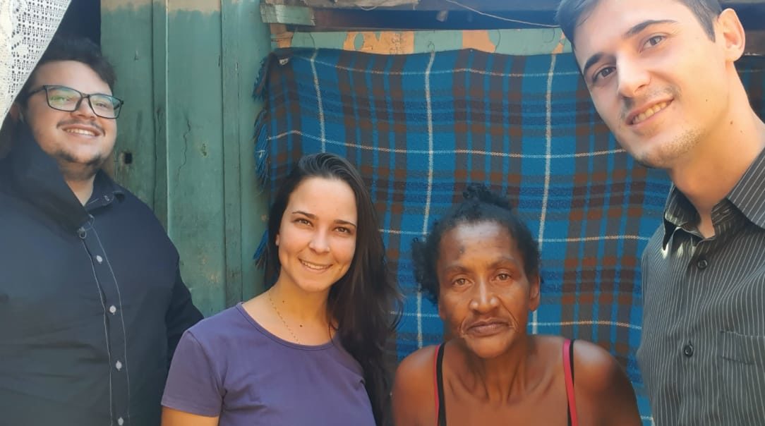 Profissionais de arquitetura com a Dona Vanica, que recebeu os voluntários e agora tem a oportunidade de ter sua condição de habitação melhorada (Foto: Divulgação/Arquivo Pessoal)
