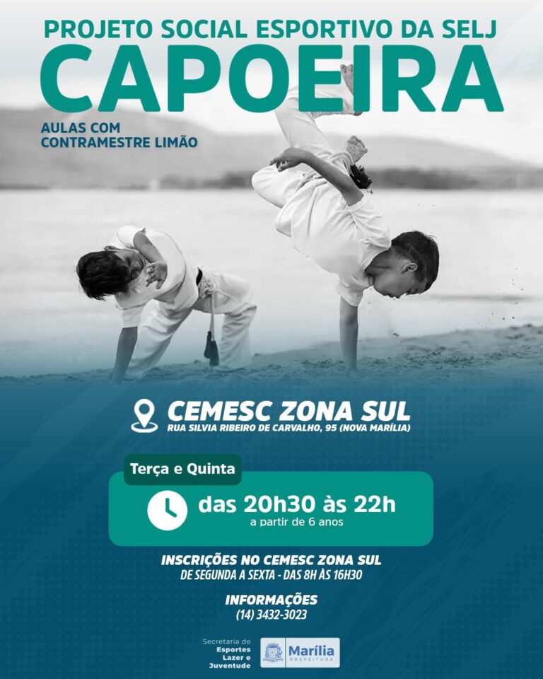 A Secretaria Municipal de Esportes inicia na próxima terça-feira (20) uma nova turma de aulas de capoeira em um novo polo, no ginásio de esportes do Cemesc zona sul.
