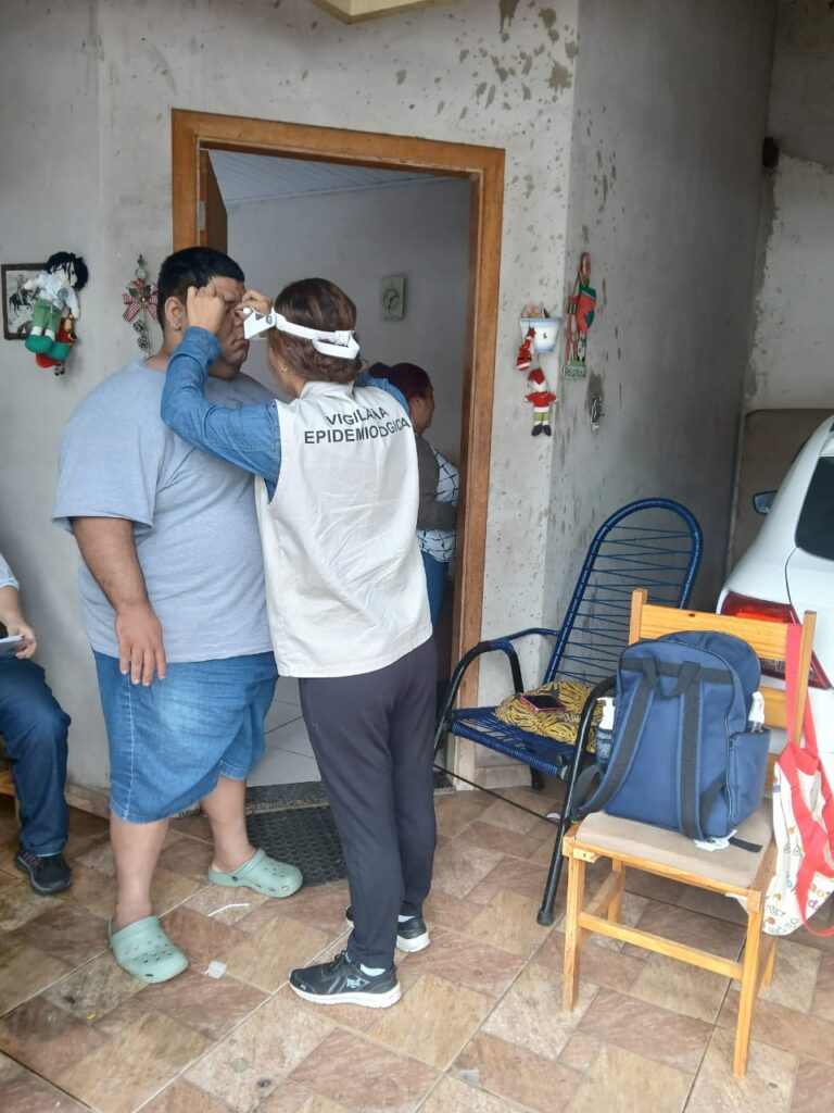 Ação percorre residências e faz testes de visão para identificar casos da infecção ocular.