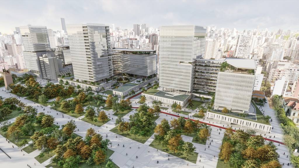 A proposta vitoriosa para a construção da futura sede do centro administrativo do governo paulista nos arredores da cracolândia, na região central da cidade de São Paulo, prevê a construção de calçadões, áreas verdes e lojas acessíveis a pedestres para facilitar a integração dos novos edifícios ao entorno.