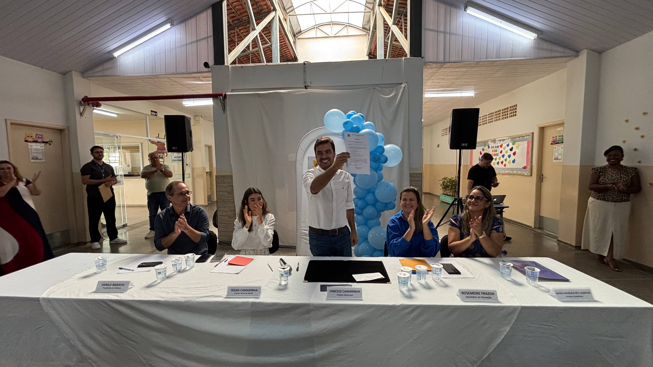 A autorização para o início das obras foi assinada pelo prefeito Vinicius Camarinha (PSDB) na própria escola, durante solenidade com a presença da primeira-dama Tássia Camarinha, dos vereadores Danilo Bigeschi (PSDB) e João do Bar (PSD), e dos secretários municipais Rosemeire Frazon (Educação) e Bruno Gaudêncio (Assuntos Estratégicos). A diretora substituta Maria Angélica de Souza Martins recepcionou as autoridades, junto à equipe escolar e familiares de alunos.