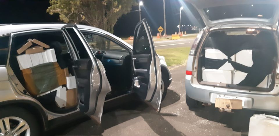 Nos veículos havia óculos e relógios sem notas fiscais. A mercadoria ocupava todo o porta malas e interior dos automóveis.