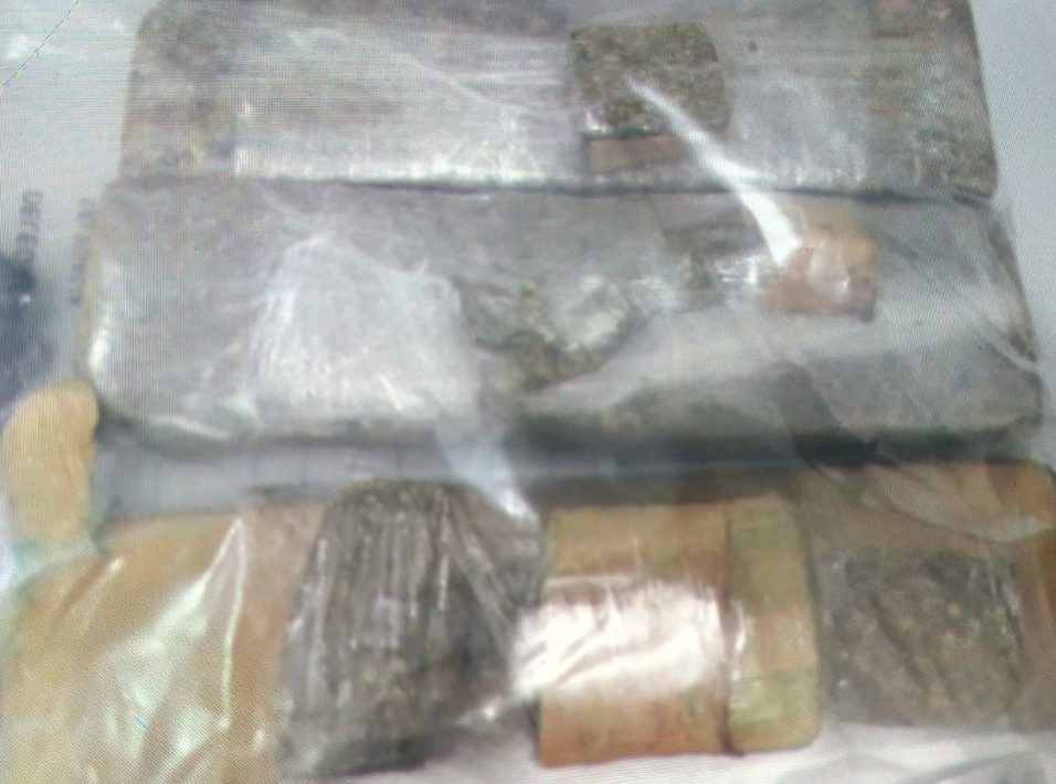 Em busca veicular, foram localizados sob os bancos dianteiros do carro, três tabletes de maconha e algumas porções da mesma droga.