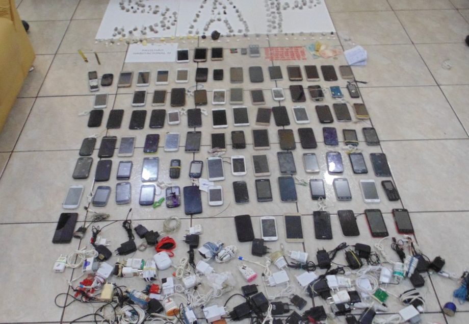 Foram apreendidos: 289 aparelhos celulares, 96 baterias para celular, 78 chips para celular de diversas operadoras, 199 fones de ouvido, 364 carregadores de celular, 75 capas de celular, 8 cabos com conexão USB, 640 invólucros de maconha, 179 invólucros de cocaína, 7 tijolos de maconha, 21 comprimidos de estimulantes sexuais, 39 comprimidos (não identificados), 5 balanças de precisão, 7 notas de dinheiro, 1 moeda, 3 pedaços de serra para metal, 8 adaptadores para cartão de memória, 21 pendrives, 1 cartão de memória, 2 facas artesanais, 3 correntes de bijuteria, 2 pilhas AAA, 1 bateria recarregável, 1 dichavador de fumo e 2 máquinas profissionais com acessórios e tinta para tatuagem.