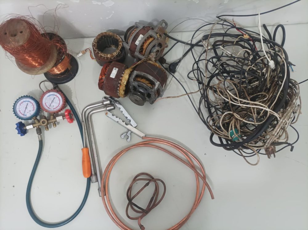 Segundo os militares, quando chegaram ao local, Rocha estaria na frente do imóvel com uma bolsa. No objeto estavam duas bobinas de fios de cobre, além de alguns motores elétricos, ferramentas e pedaços de fio de cobre.