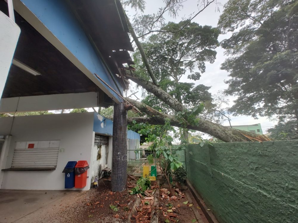Uma árvore caiu em cima do telhado da Escola Estadual Bento de Abreu Sampaio Vidal, na tarde desta sexta-feira (17), no bairro Jardim Maria Izabel, zona Leste de Marília.