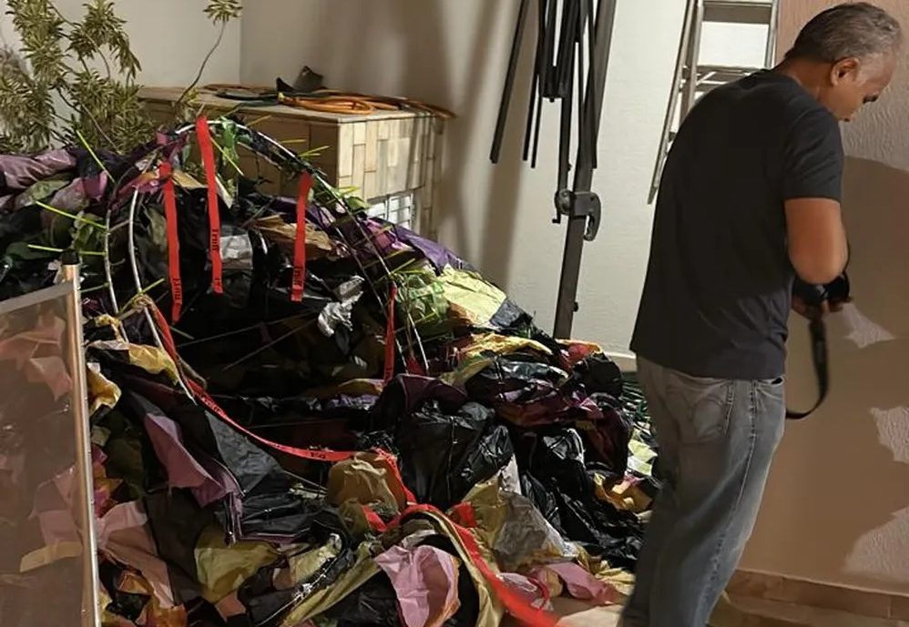 O balão danificou a cerca elétrica e caiu dentro da piscina da propriedade. A perícia esteve no local e constatou que havia um equipamento de sinalização no balão.