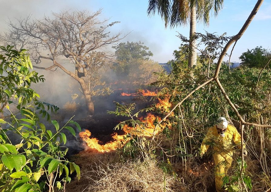 Durante a madrugada desta segunda-feira (2), a corporação foi novamente acionada para controlar o fogo. Quase um milhão e meio de metros quadrados já teriam sido atingidos pelas chamas.