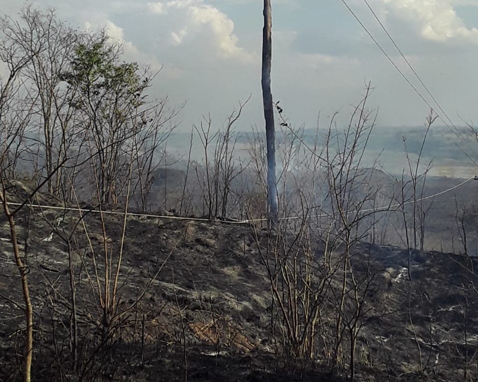Um incêndio de grandes proporções destruiu na tarde desta terça-feira (13), pelo menos dois postes que fazem a ligação elétrica para as bombas de captação de água do Rio do Peixe. O estrago não afetará o abastecimento de água na cidade.