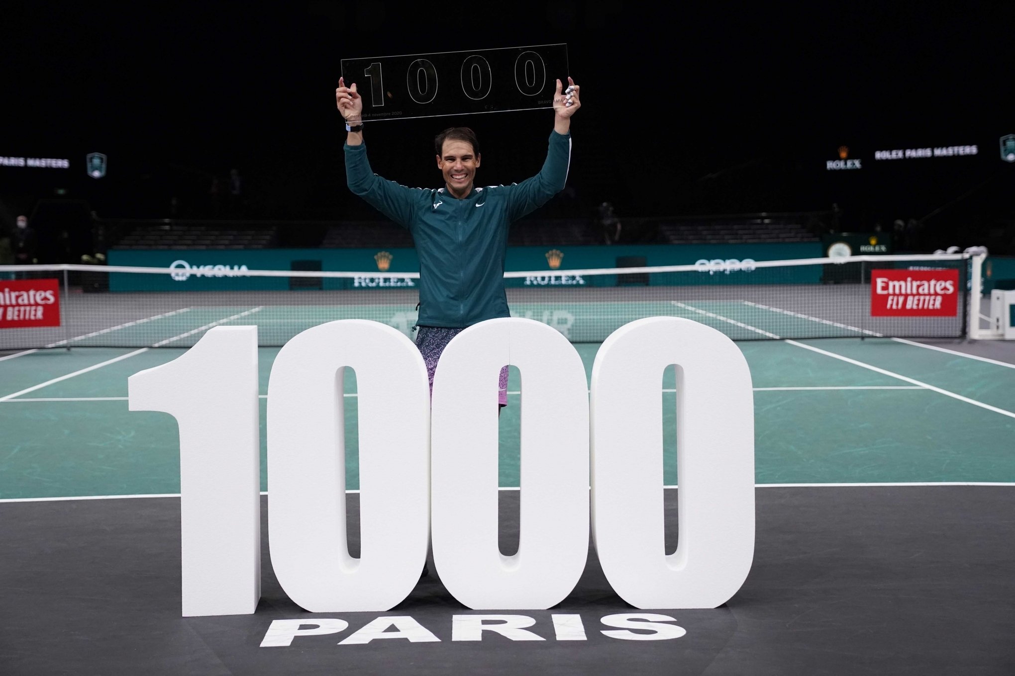 Rafael Nadal se tornou, nesta quarta-feira, o quarto tenista da história a atingir a marca de mil vitórias na carreira, ao derrotar o compatriota Feliciano Lopez, por 2 sets a 1, com parciais de 4/6, 7/6 (7/5) e 6/4, em 2h30 de jogo válido pela segunda rodada do Masters 1000 de Paris.