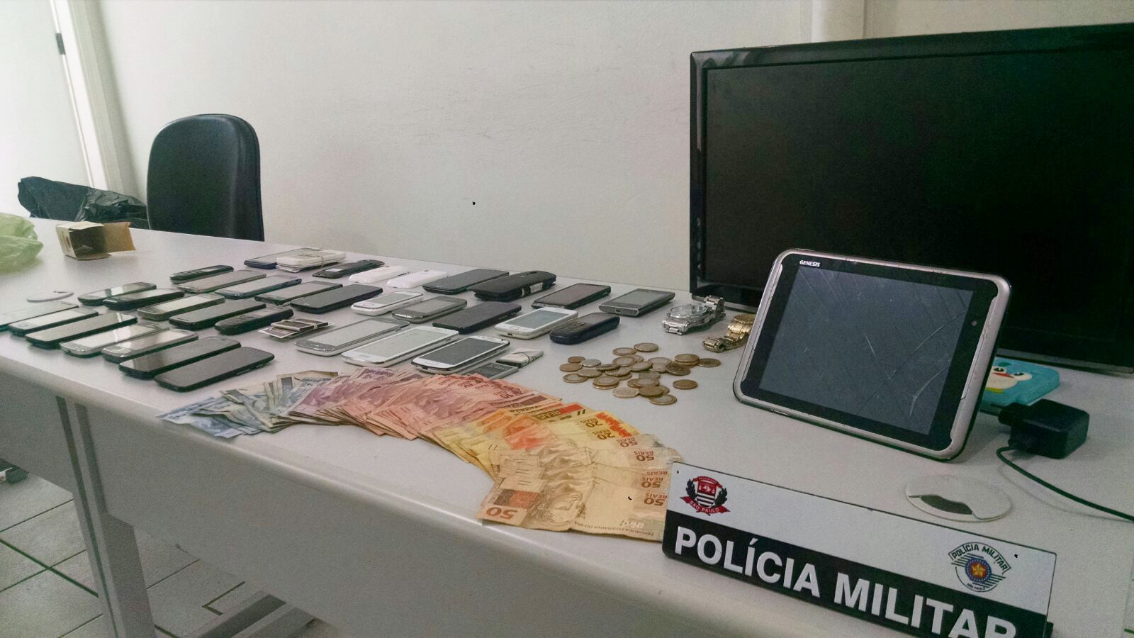 Após pressão dos militares, o indivíduo ainda indicou onde estariam outros celulares. Em diligências, os policiais localizaram mais 28 aparelhos, todos provavelmente também frutos de roubos e furtos ocorridos por Marília.
