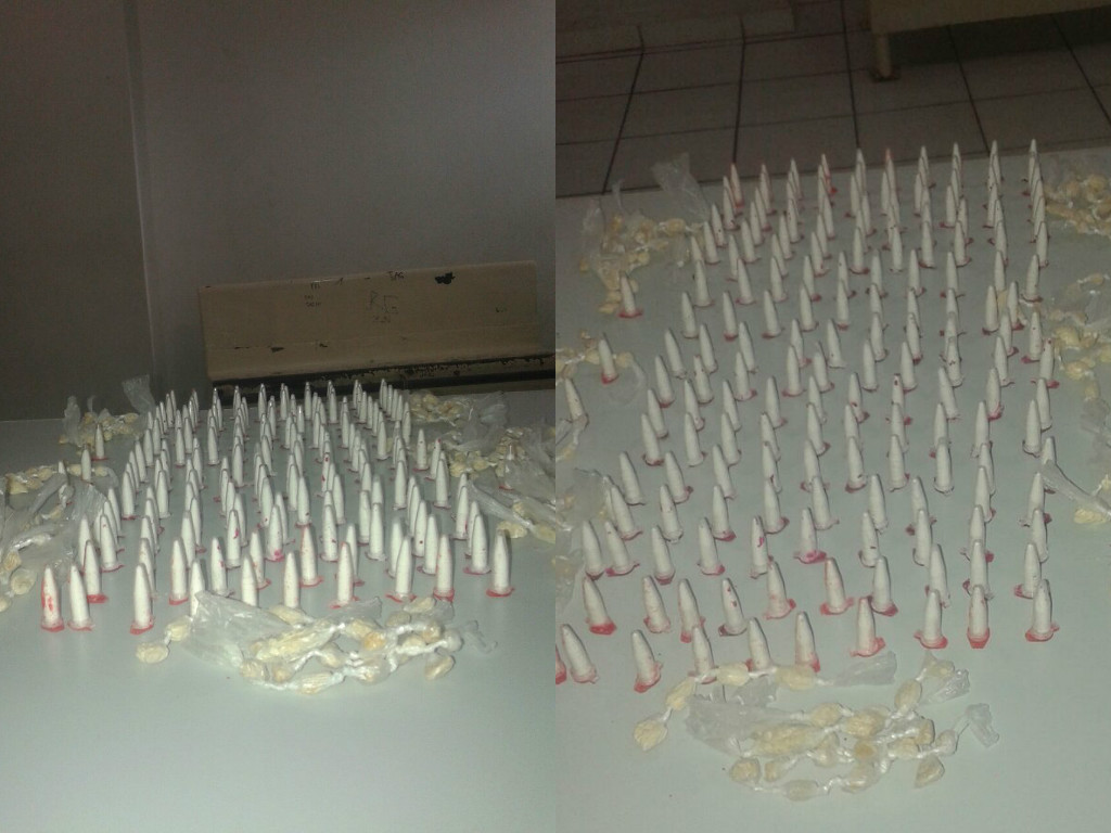 Após varredura feita no local onde o suspeito estava, a polícia apreendeu 175 pinos de cocaína e 262 porções de crack.