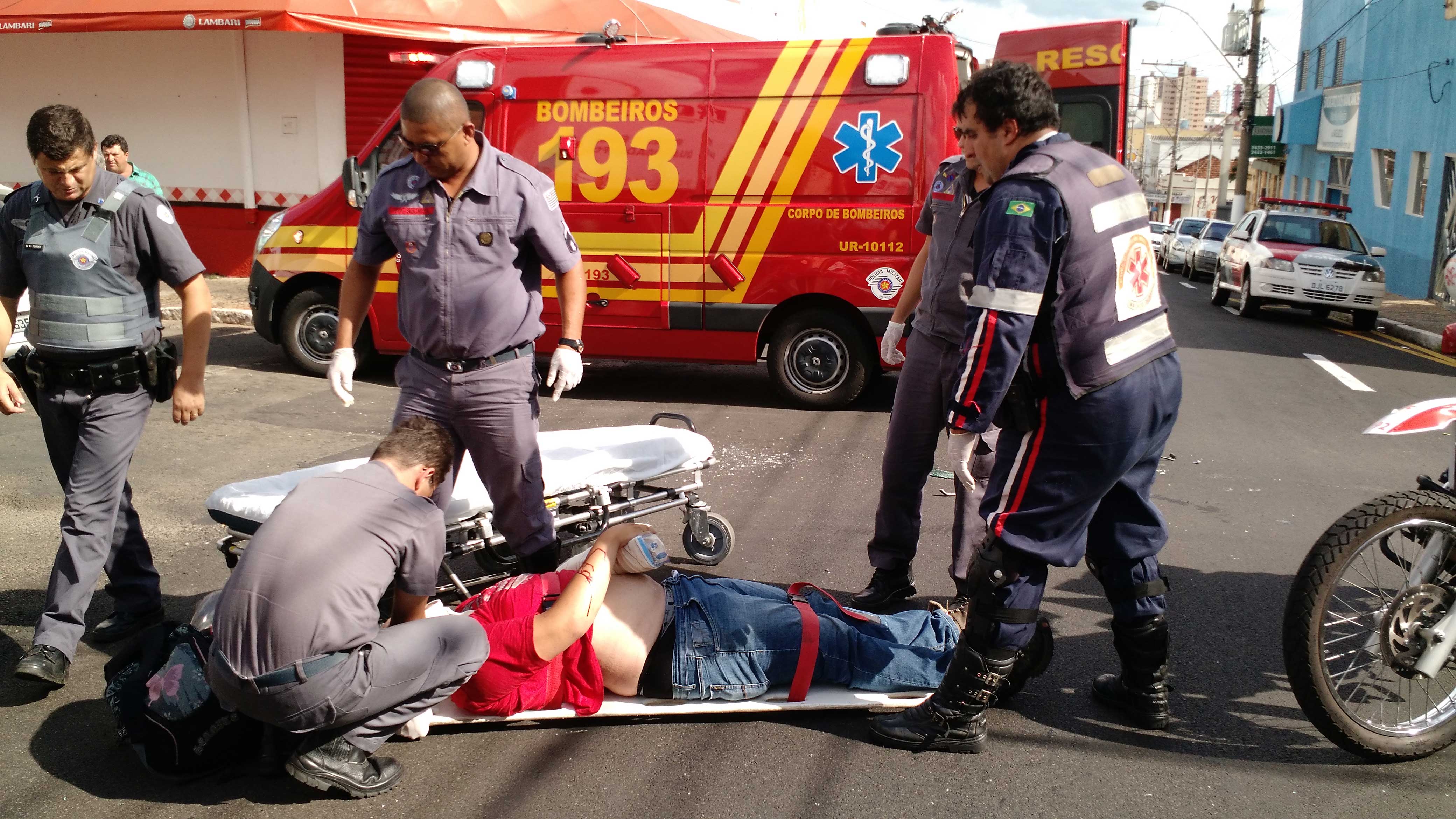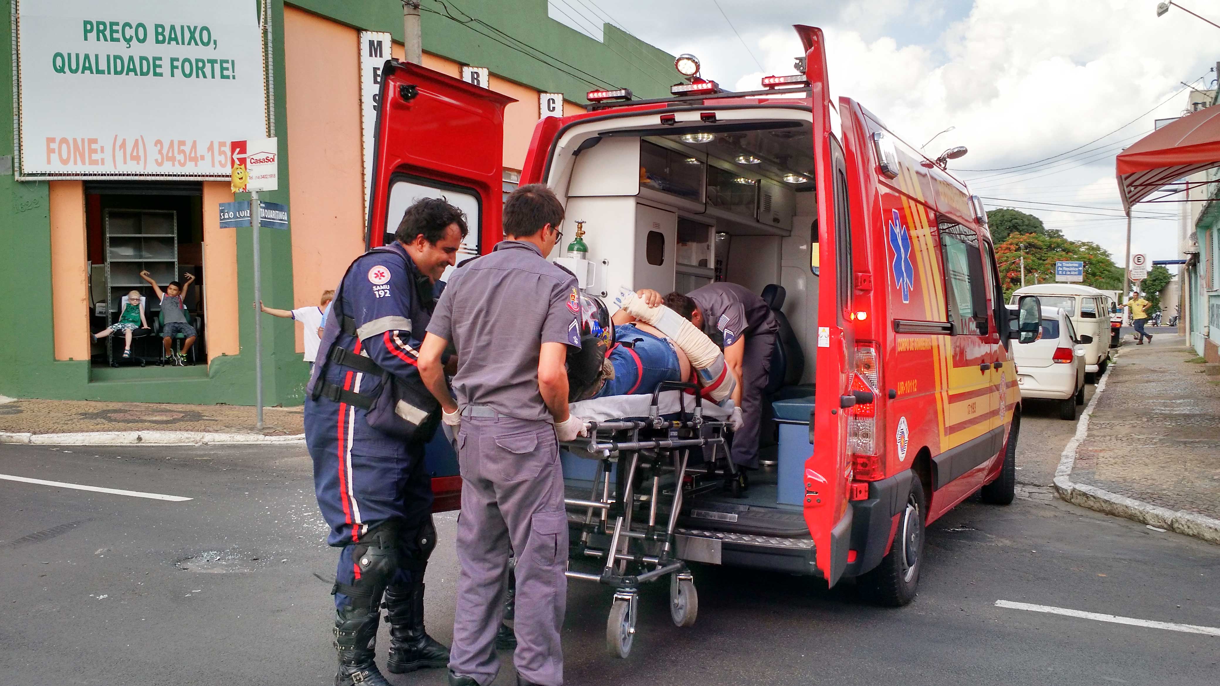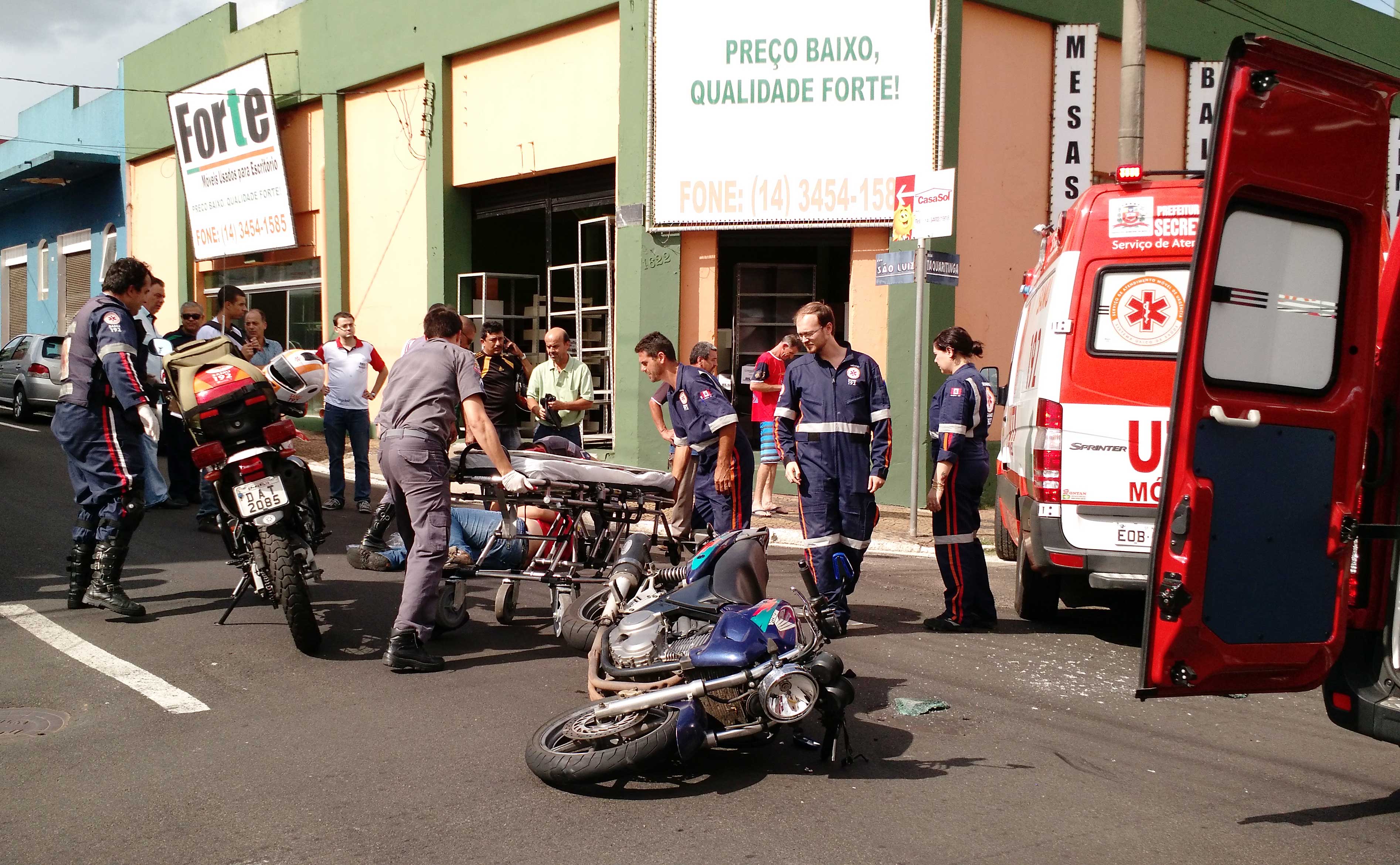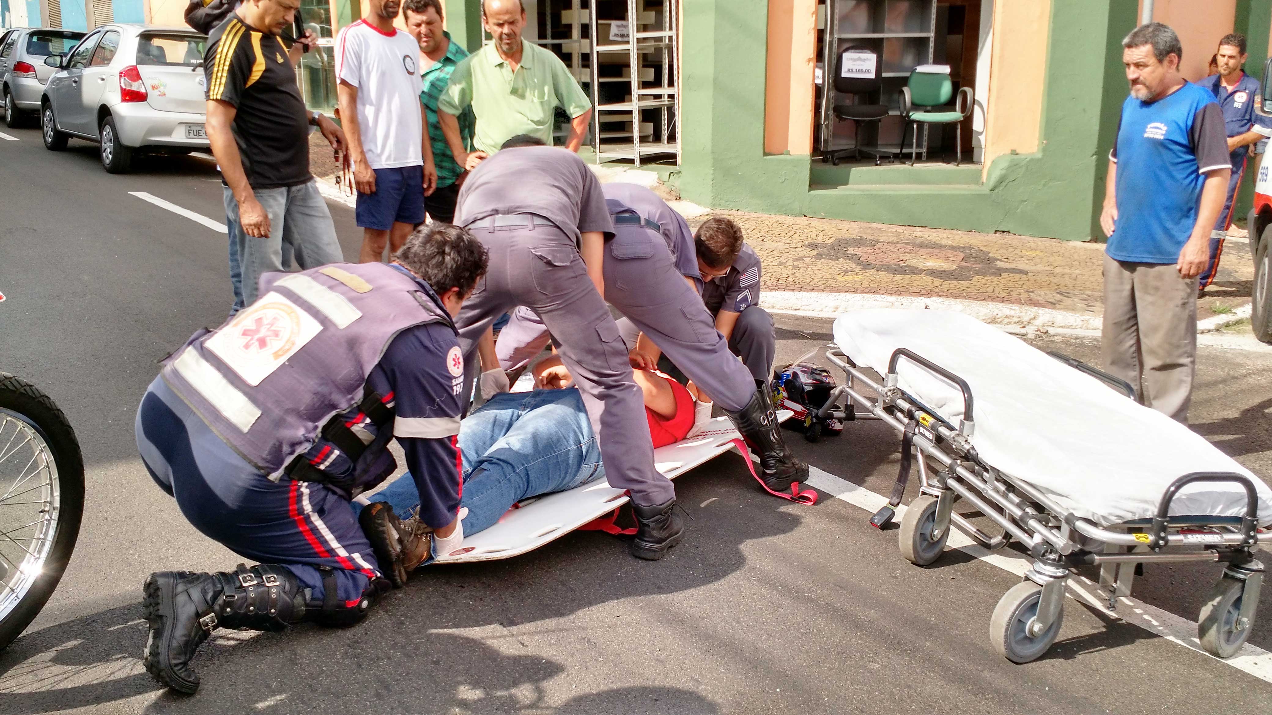 Rapaz fratura braço em acidente de moto na Rua São Luiz