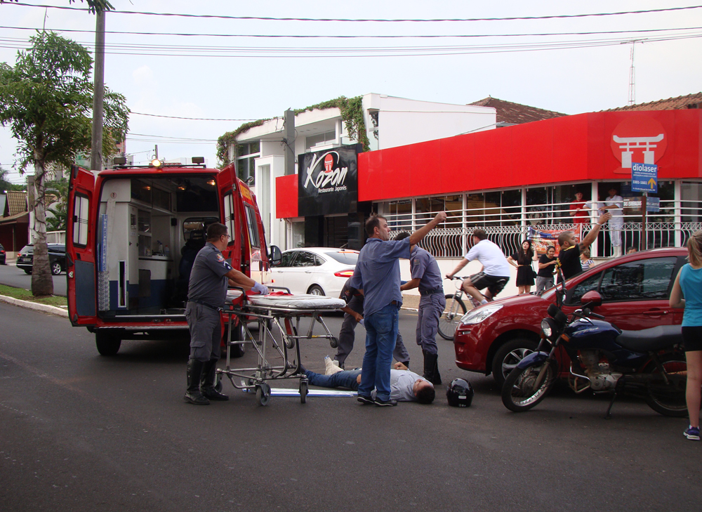 Um motociclista de 25 anos que trafegava atrás e no mesmo sentido, não conseguiu desviar a tempo e se chocou contra a lateral do carro.