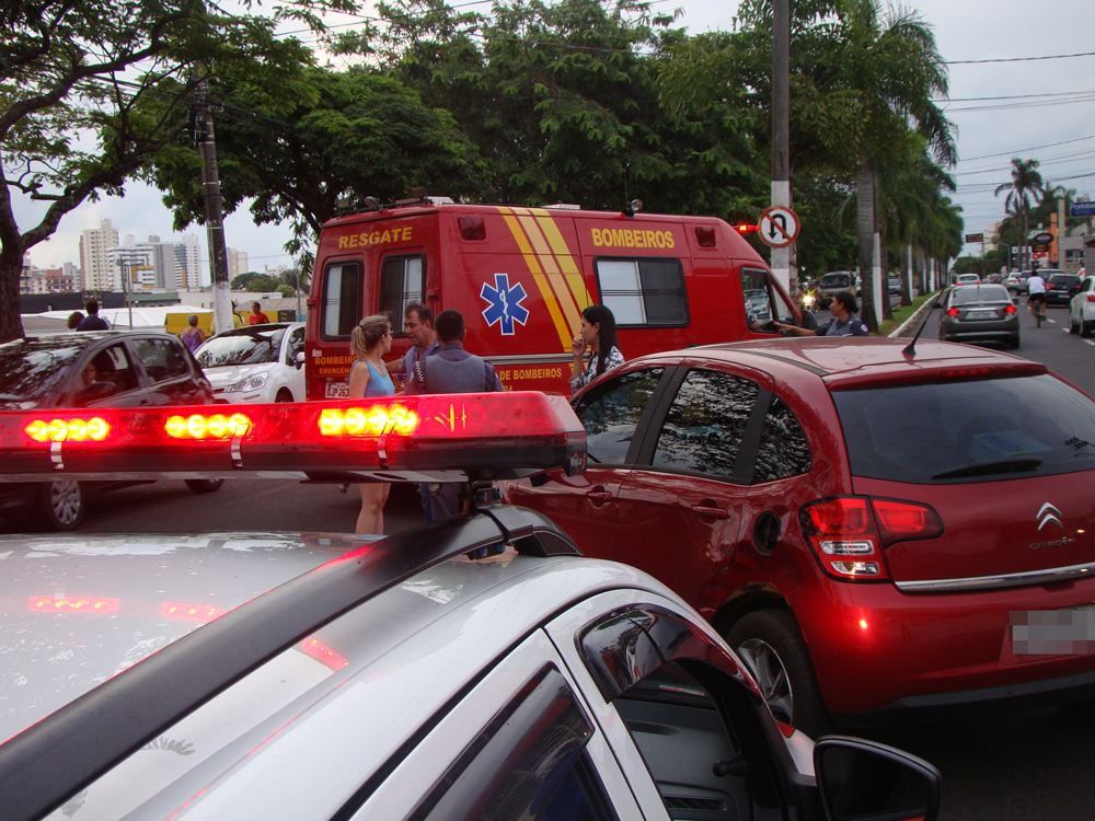 Segundo a polícia, a motorista de um Citroen C3 seguia pela avenida sentido bairro-centro, quando fez uma conversão proibida à esquerda, tentando retomar a direção contrária da via.