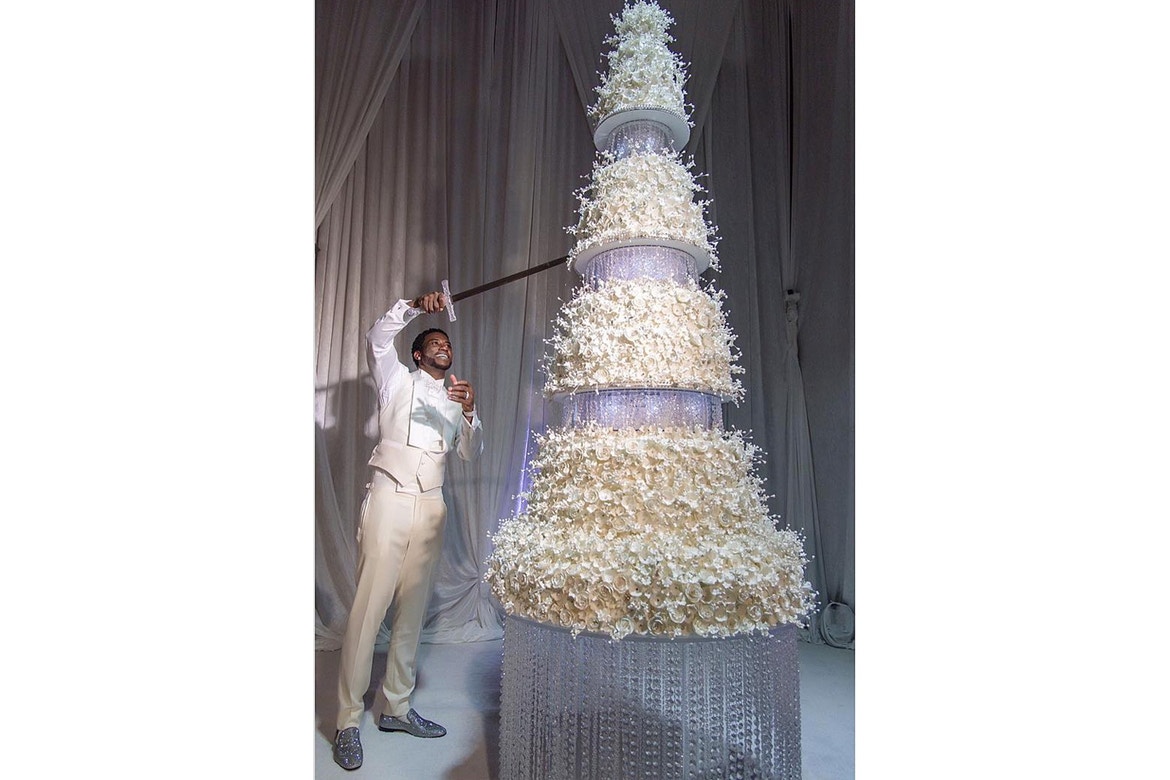 A mais recente é sobre sua festa de casamento, na terça-feira, 17, com a ícone fashion Keyshia Ka’oir. Agora apareceram fotos e vídeos do casal com seu bolo de 3 metros de altura, e a espada que eles usaram para fatiar a sobremesa.