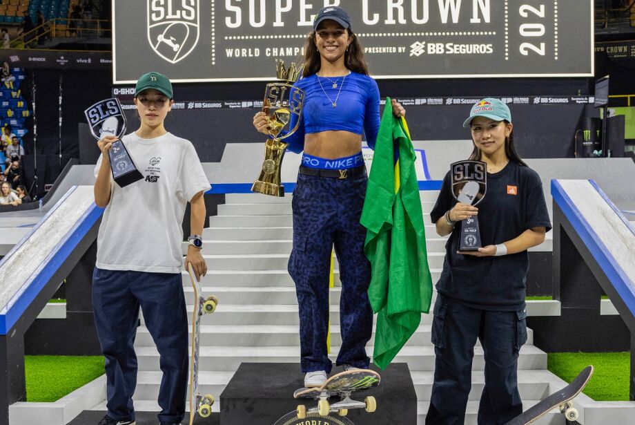 Acostumada a façanhas incríveis sob pressão, a maranhense Rayssa Leal, de apenas 16 anos, voltou a fazer história neste domingo (15) ao se tornar a primeira atleta do país a conquistar o tricampeonato na Liga Mundial de Skate Street (SLS, na sigla em inglês). Atrás no placar ao errar as duas primeiras apresentações das manobras no Super Crown (competição final que define o campeão da temporada), Rayssa levou o Ginásio Ibirapuera ao delírio ao cravar nota 9.1 na quinta e última chance. Ela venceu de virada a disputa com quatro japonesas (duas delas campeãs olímpicas) e uma australiana.