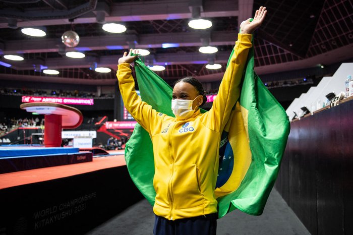 Rebeca vive o melhor ano de sua vida. Além de conquistar o ouro no salto e a prata no individual geral na Olimpíada de Tóquio, ela fez história também ao se tornar a primeira brasileira a conquistar duas medalhas em um Mundial de Ginástica (ouro no salto e prata nas barras assimétricas), em Kitakyushu, no Japão, no mês passado.