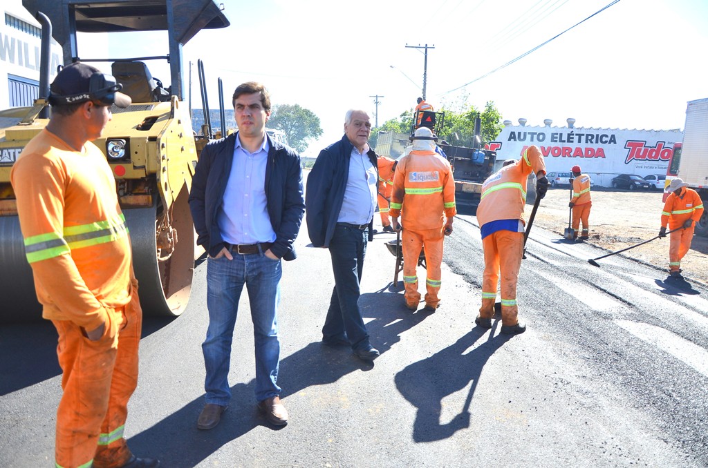 Prefeito Vinicius e secretário de Obras acompanham recapeamento na avenida Antártica