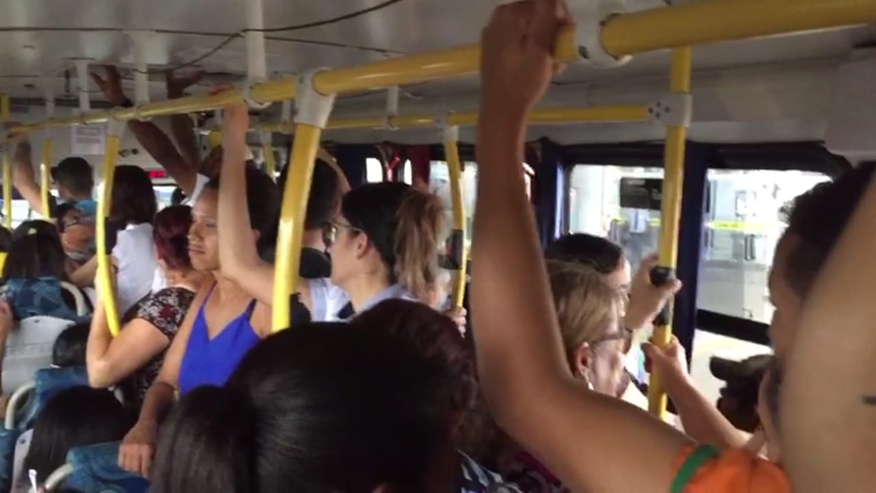 Juliana Benevides Branco usa os ônibus da Turismar há sete anos e diz que nos horários de pico se sente em “uma lata de sardinha”. Ela também reclama de alterações em horários sem a devida informação e quebras constantes dos veículos.