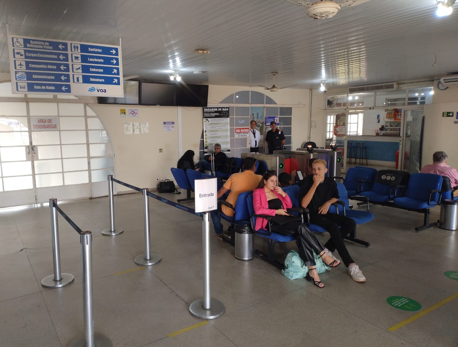 A apresentação da reforma no aeroporto foi improvisada na área de desembarque, pouco depois da partida do único voo diário pela Azul, companhia que atende exclusivamente a demanda local.