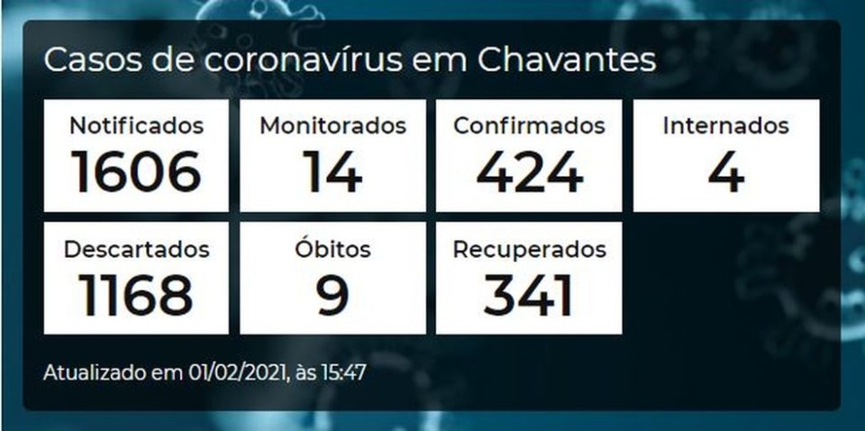 A Prefeitura de Chavantes (distante 112 quilômetros de Marília) registrou mais duas mortes pela Covid-19. Não foram divulgados detalhes sobre as vítimas.