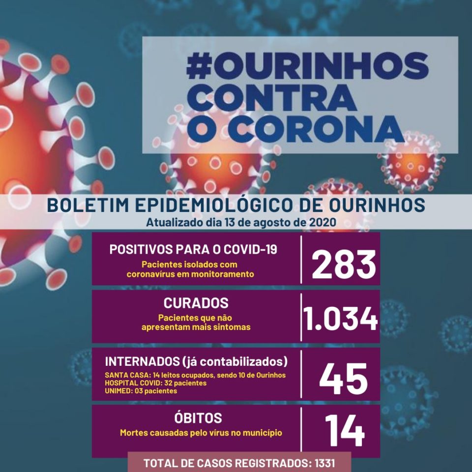 A cidade contabiliza 1.331 testes positivos, dos quais são 14 mortes e 1.034 considerados curados.