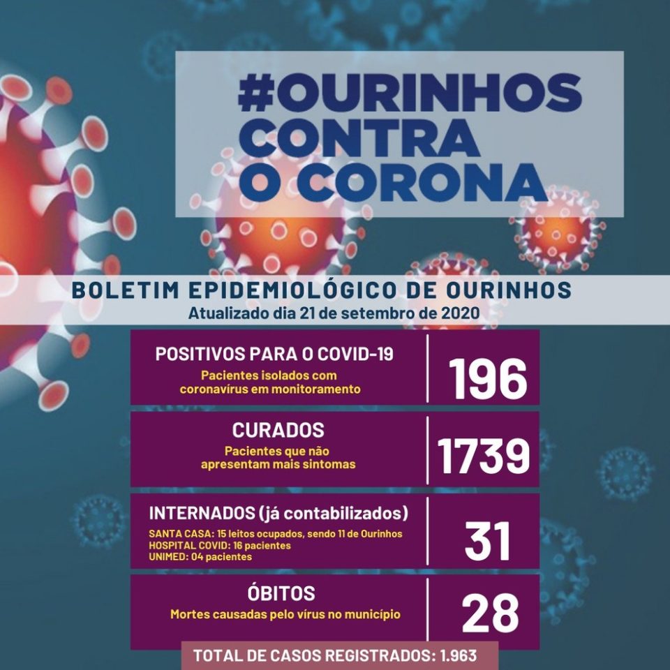 A cidade tem 2.419 testes positivos, sendo 35 óbitos e 2.285 curados.