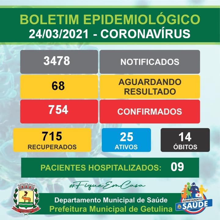 A Prefeitura de Getulina (distante 59 quilômetros de Marília) registrou mais um óbito por Covid-19 nesta quarta-feira. Não foram revelados detalhes sobre a vítima fatal.