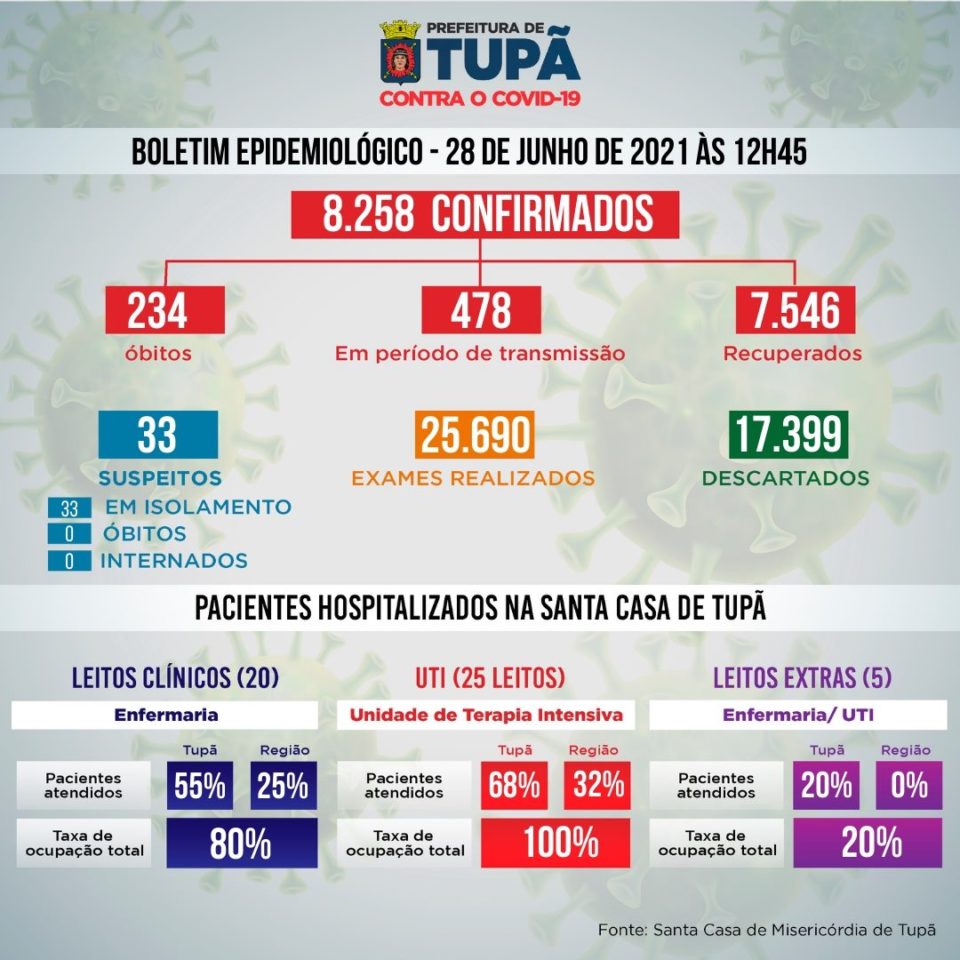 A cidade soma 8.258 casos registrados, dos quais 7.546 estão curados e 234 óbitos.