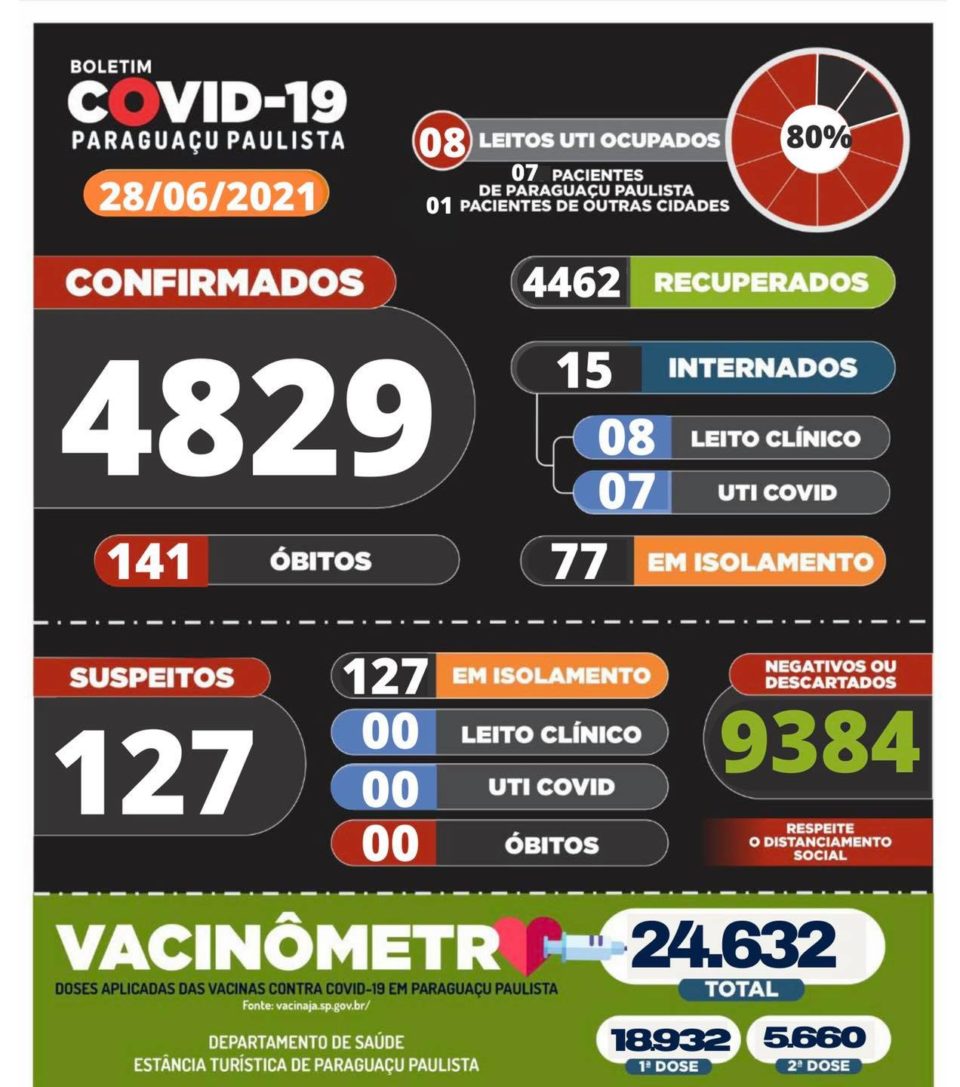 A cidade registra 4.829 casos confirmados, dos quais são 4.462 curados e 141 óbitos.