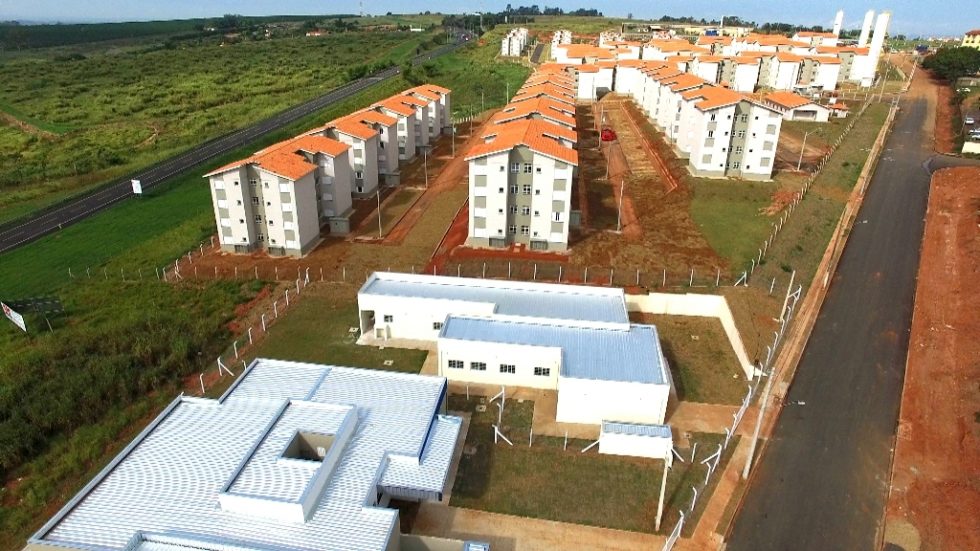 No total, são 816 apartamentos com 42 metros quadrados, apresentando sala, cozinha, dois quartos, banheiro e área de serviço (uma vaga de garagem).