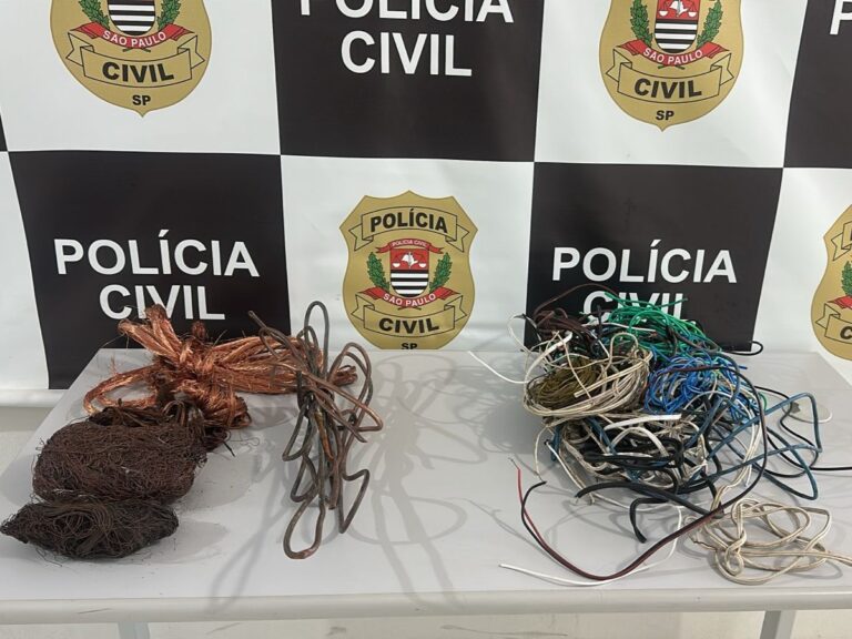 Também foram apreendidos quase três quilos de fios de cobre descascados e descaracterizados, além de mais de dois quilos de material ainda com capa, de diversas bitolas. Registros de gaveta novos, ainda embalados e sem comprovação de origem, também estavam no local.