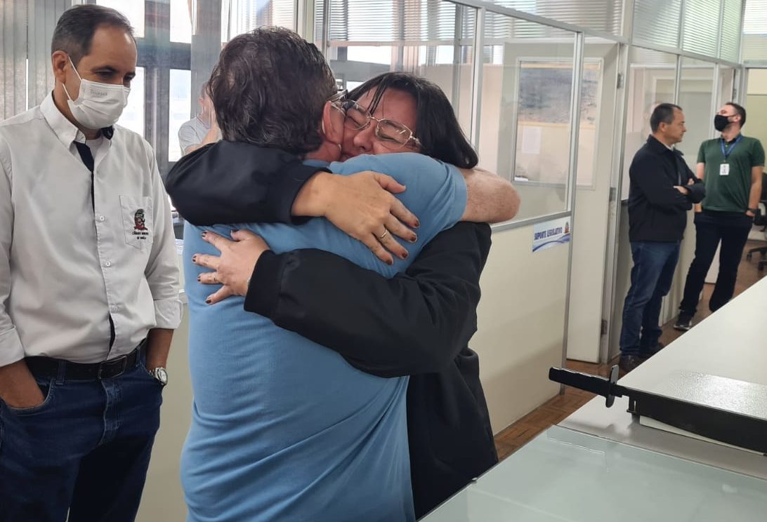 Presidente licenciado foi abraçado por servidores (Foto: Divulgação/Câmara de Marília)