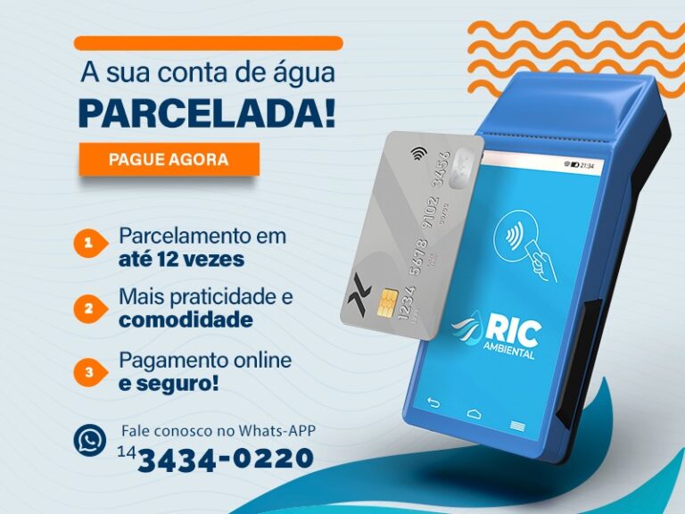 A RIC Ambiental passou a permitir o pagamento da conta de água com cartão de crédito, com possibilidade de parcelamento em até 12 vezes, como forma de ampliar as opções de quitação das faturas e facilitar a regularização de débitos. A medida já está disponível e pode ser utilizada de forma totalmente on-line, por meio do portal da concessionária.
