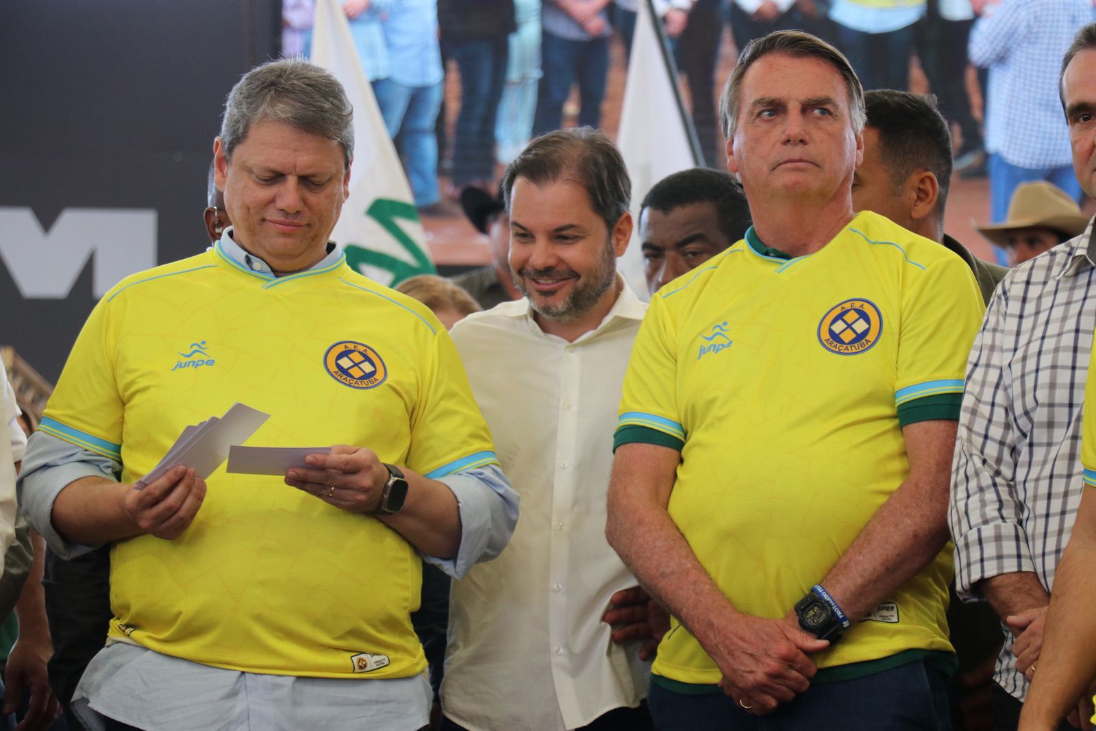 Acompanhado por Tarcísio de Freitas, Capitão Augusto e Dani Alonso, Bolsonaro destacou seu orgulho de ter plantado sementes durante seu mandato, colocando boas pessoas na política e fazendo com que os brasileiros voltassem a ter orgulho do país e da bandeira.