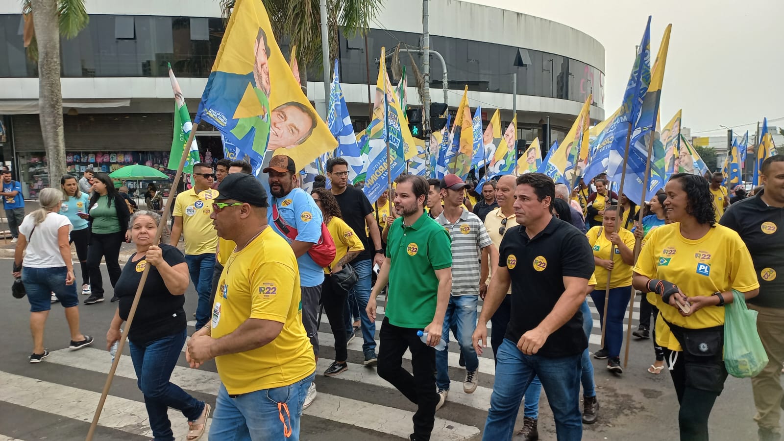 Ricardinho e Juliano iniciaram a jornada pela praça São Bento, com cabos eleitorais e porta-bandeiras, além de candidatos a vereador. O prefeito Daniel Alonso (PL) e a primeira-dama Selma Regina também participaram da caminhada.