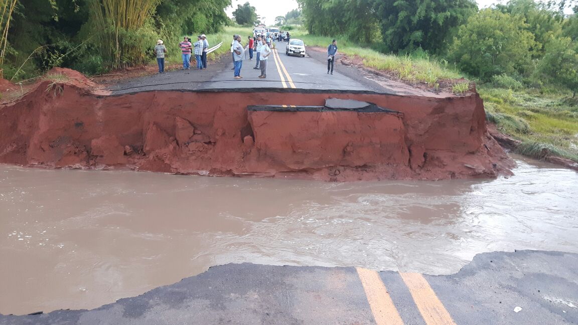 Debaixo da estrada haviam duas galerias que faziam a vazão do rio. A forte chuva da madrugada teria feito a estrutura ceder.