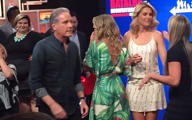 Ticiane entrou no palco pouco depois dele. Deu um beijinho, e continuou no roteiro, anunciando o quadro “Além do Peso” com famosos, no “Hoje em Dia”. Ele estava lá para falar sobre “A Fazenda”, seu novo “job” na emissora paulista.