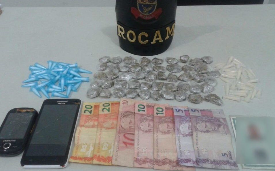 O rapaz percebeu as motos da polícia e tentou fugir, mas acabou detido. Em uma pochete que estava com ele foram encontradas as drogas, assim como R$ 80 em notas diversas.