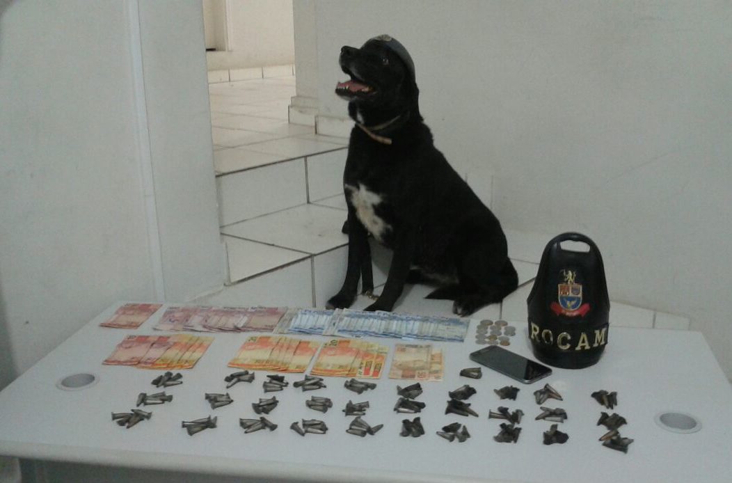 Na ação policial foram apreendidos 103 pinos com cocaína e 50 com crack, além de R$ 522 que estavam no bolso da blusa do acusado.