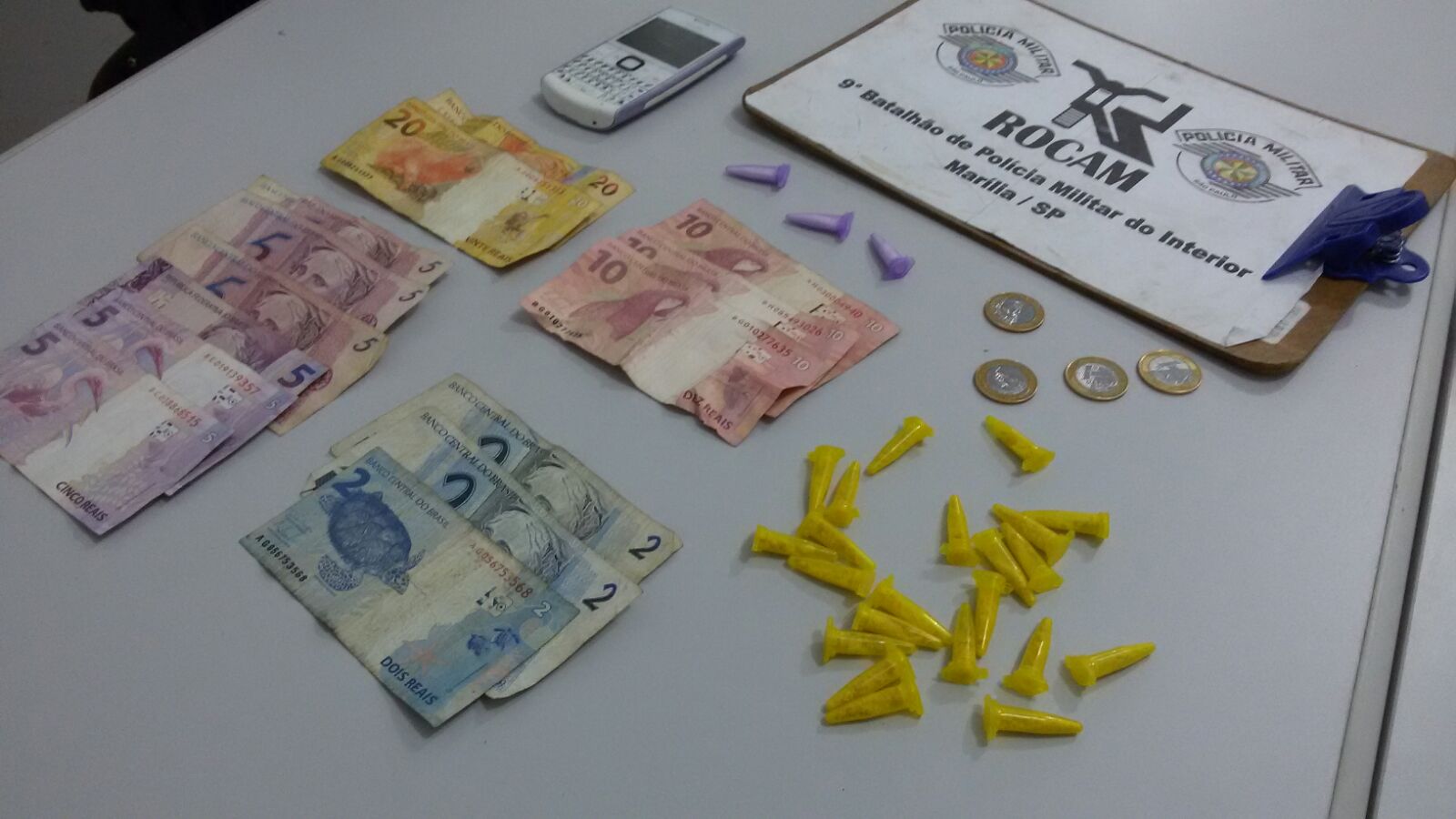 Miguel se assustou com a presença dos militares e empreendeu fuga. A moto foi acompanhada e depois de um cerco, a dupla foi abordada pela PM. Em revista foram encontrados 22 pinos com crack, 3 com cocaína e R$ 110 em dinheiro.