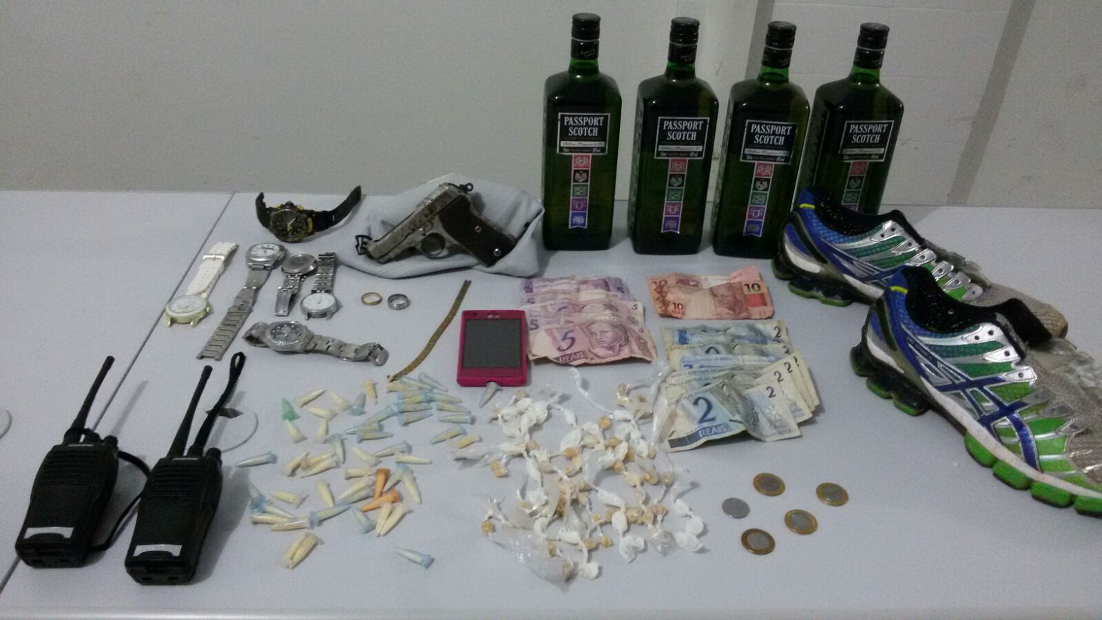 No interior do barraco a polícia ainda achou dois rádios comunicadores HT, 4 litros de whisky, 6 relógios, um par de tênis, 2 alianças e uma corrente de ouro. Os objetos foram todos obtidos através do crime.