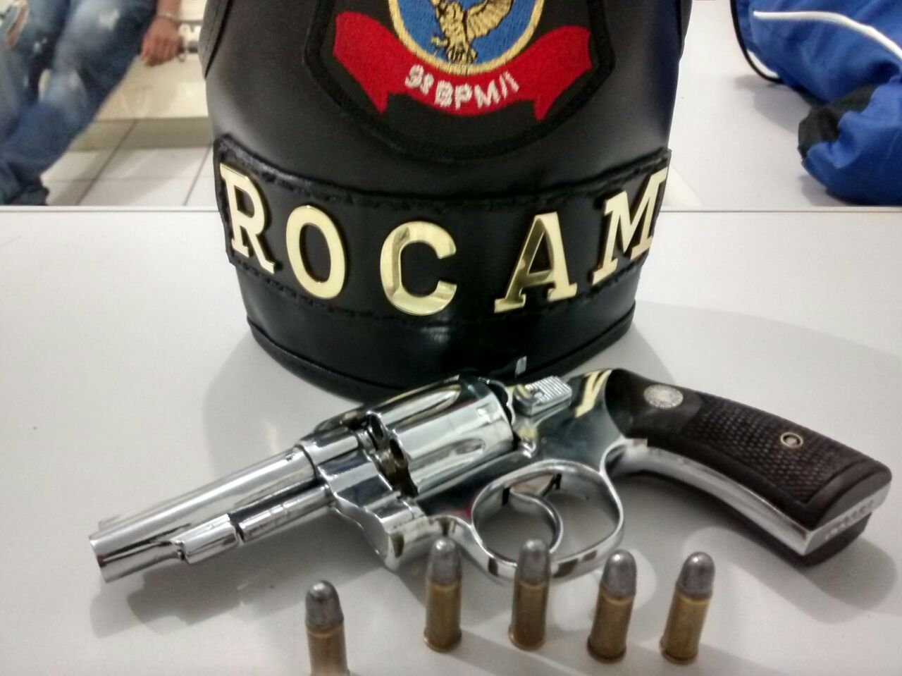 Após breve perseguição, os homens foram abordados na Avenida Tomé de Souza. Um deles carregava um revólver calibre 32, municiado e com numeração raspada.