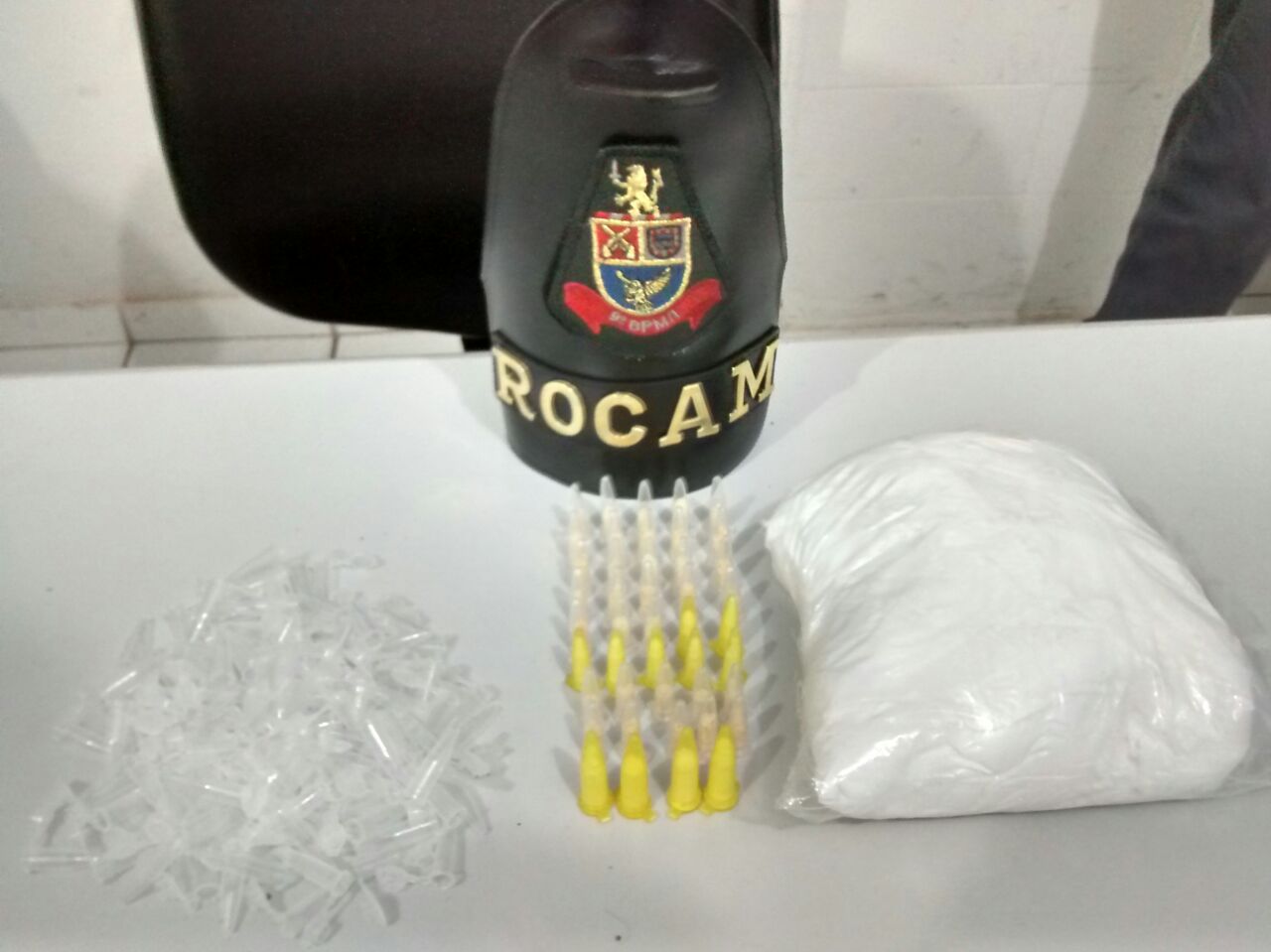 No total foram apreendidos 44 pinos cheios de droga. No apartamento onde mora o acusado, a polícia localizou vários pinos vazios, que acondicionariam mais entorpecentes.