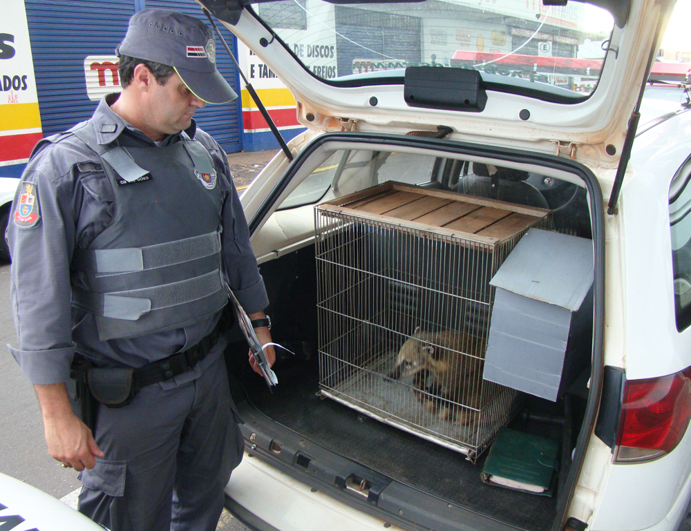 - Polícia Ambiental com animal silvestre (Foto: Gabriel Tedde)