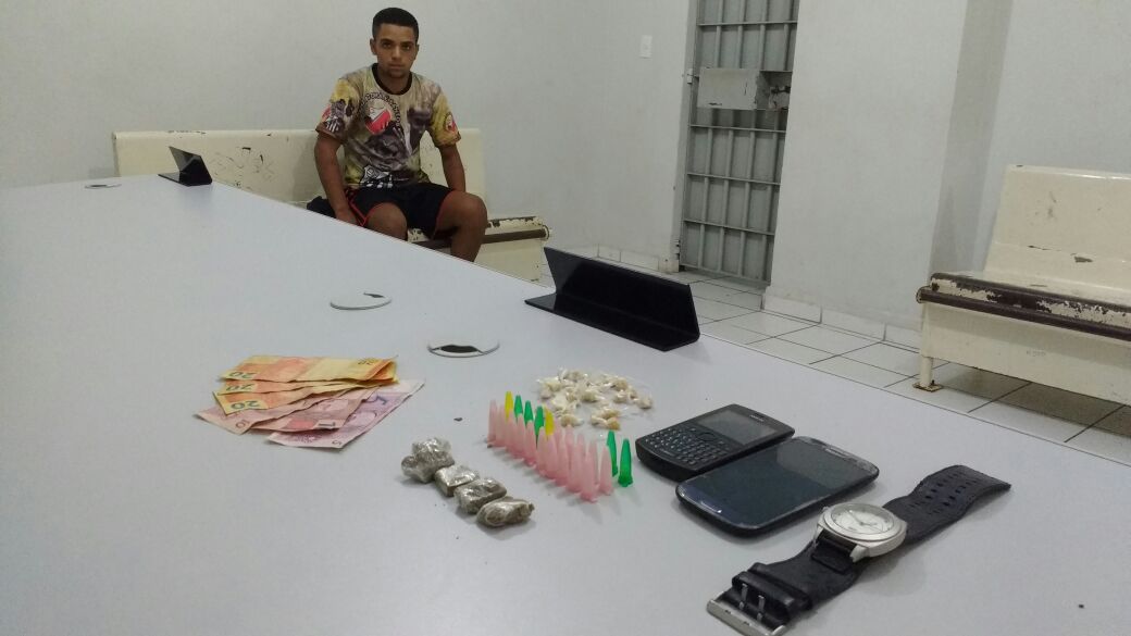 No armário da cozinha de Romário, foram encontrados 29 pinos com crack, 15 com cocaína e 5 porções de maconha. Também foram confiscados R$ 85 em dinheiro, um relógio e dois celulares.