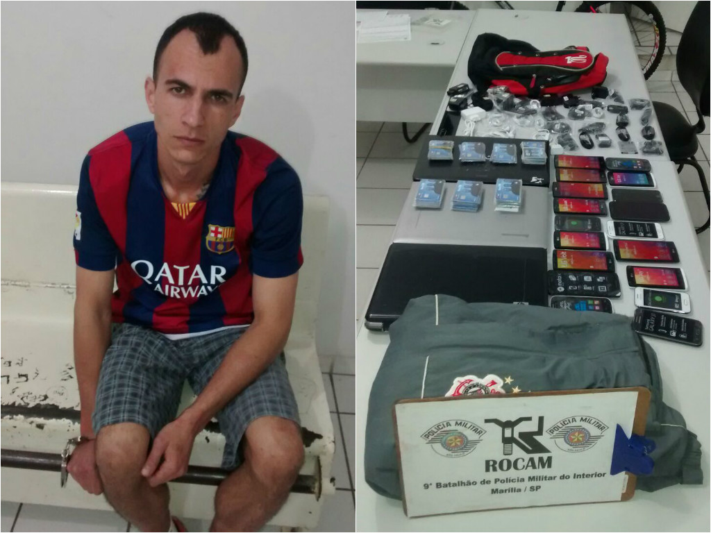 Policiais militares da Rocam prenderam na tarde deste sábado (12) o ajudante geral Francis de Souza, de 29 anos, acusado de furtar uma loja de celulares na rua São Luís, centro de Marília.